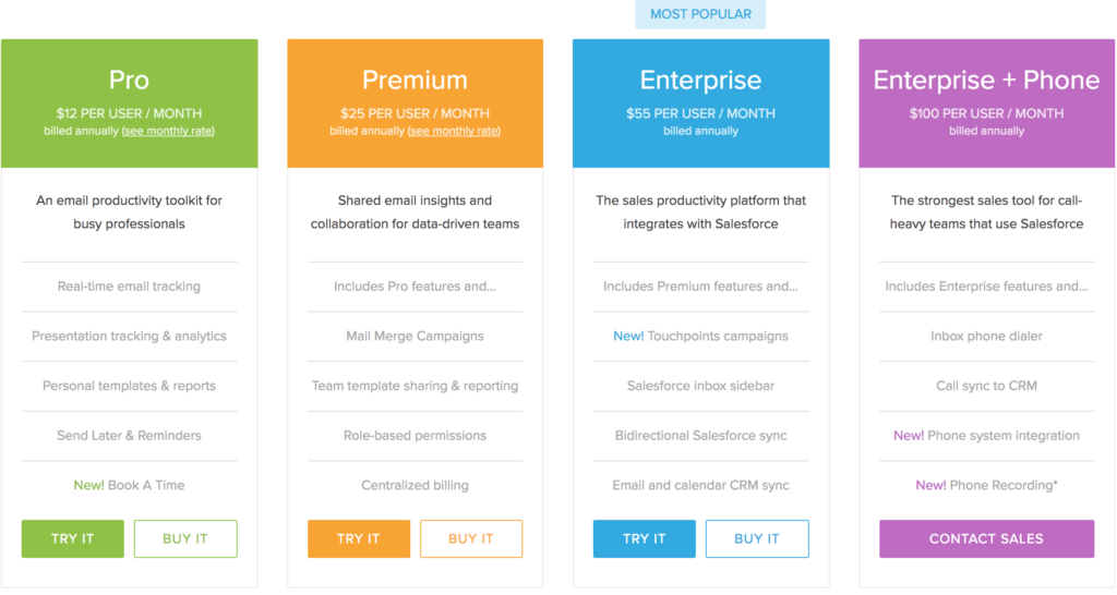 The pricing page itself was quite standard; there were several graduating plan tiers with some self-service options and a sales contact form for the enterprise plans.