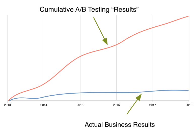 It is not uncommon for marketers to string together a series of “winning” experiments (positive, statistically significant change reported by the testing tool) and yet see no long-term impact to the overall conversion rate. This can happen through testing errors or by simply changing business and traffic conditions.