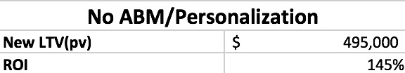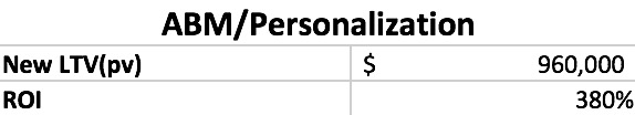 In the case where you’re actually personalizing for target accounts, you can actually drive significantly more LTV into the business; almost well over 900,000 in this model with an ROI of 380%.
