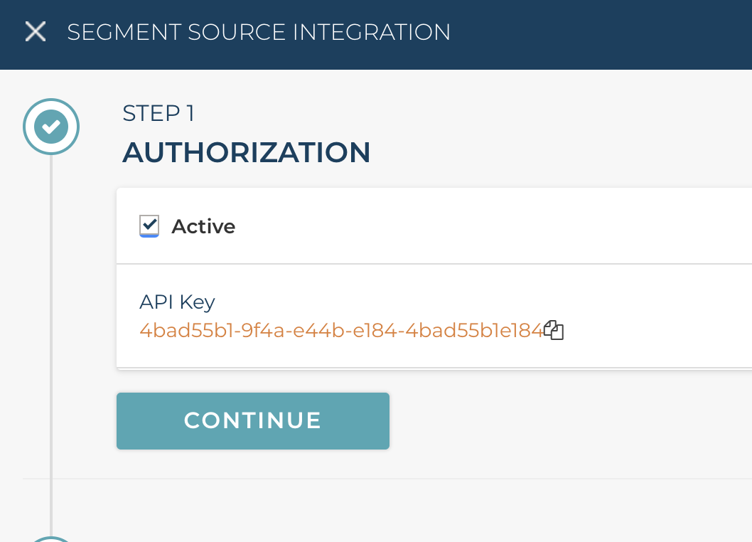 Next, copy the API Key displayed in the integration details, check the “Active” checkbox and save the integration.