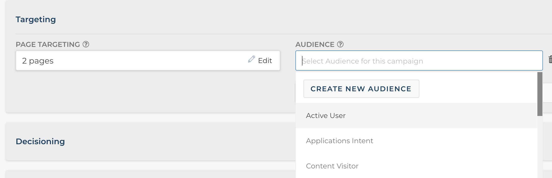Once created, this new condition can be used to build targeted audiences that I can then use to personalize content to existing customers. My newly created Active User audience can now be easily applied to any of our A/B, predictive, and rules based campaigns, like in this example below: