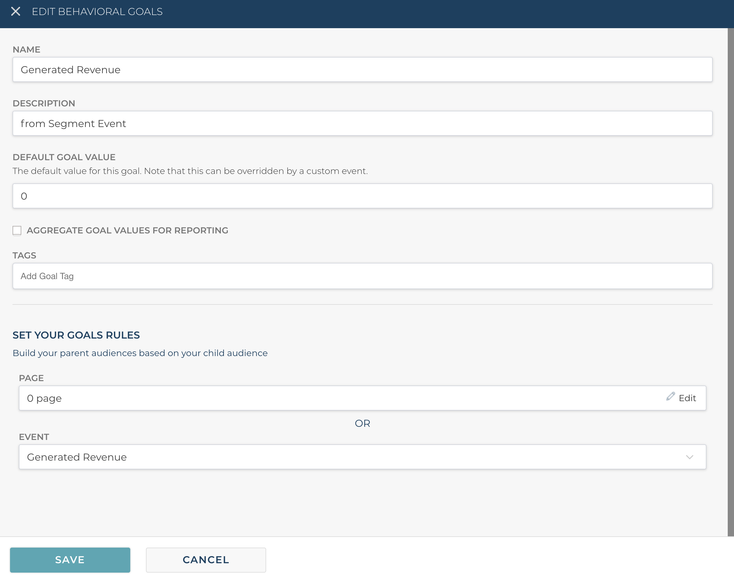 Because all Generated Revenue for a user is tracked within Segment we can easily build a goal in the FunnelEnvy platform that will update whenever that Segment event fires and populate with the actual revenue generated from that event.