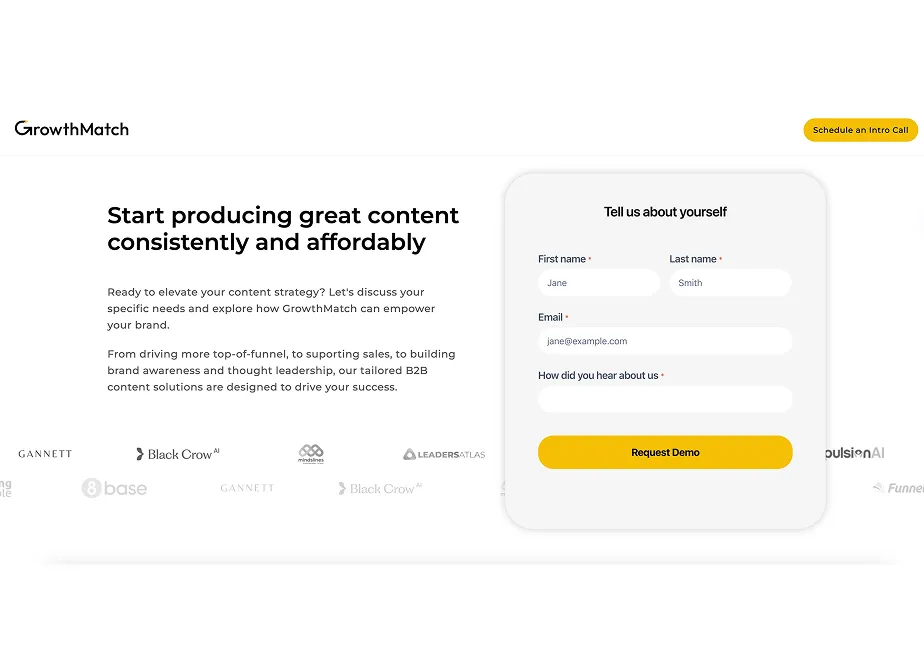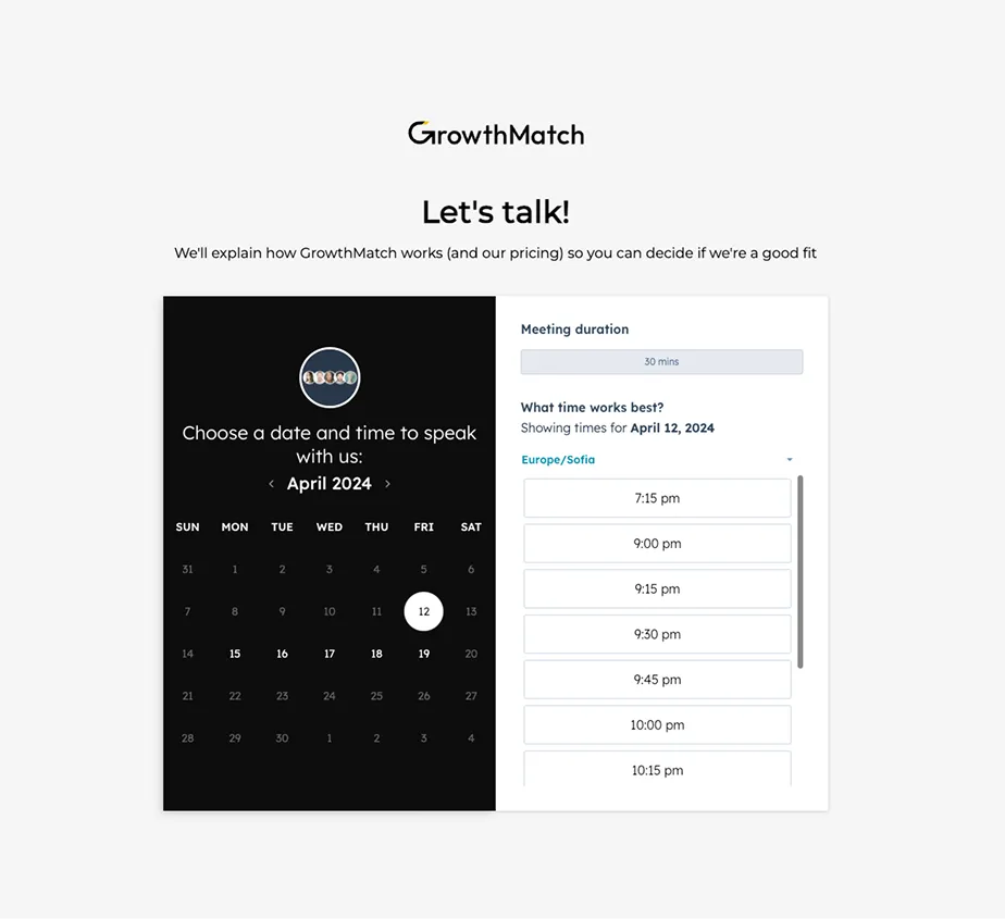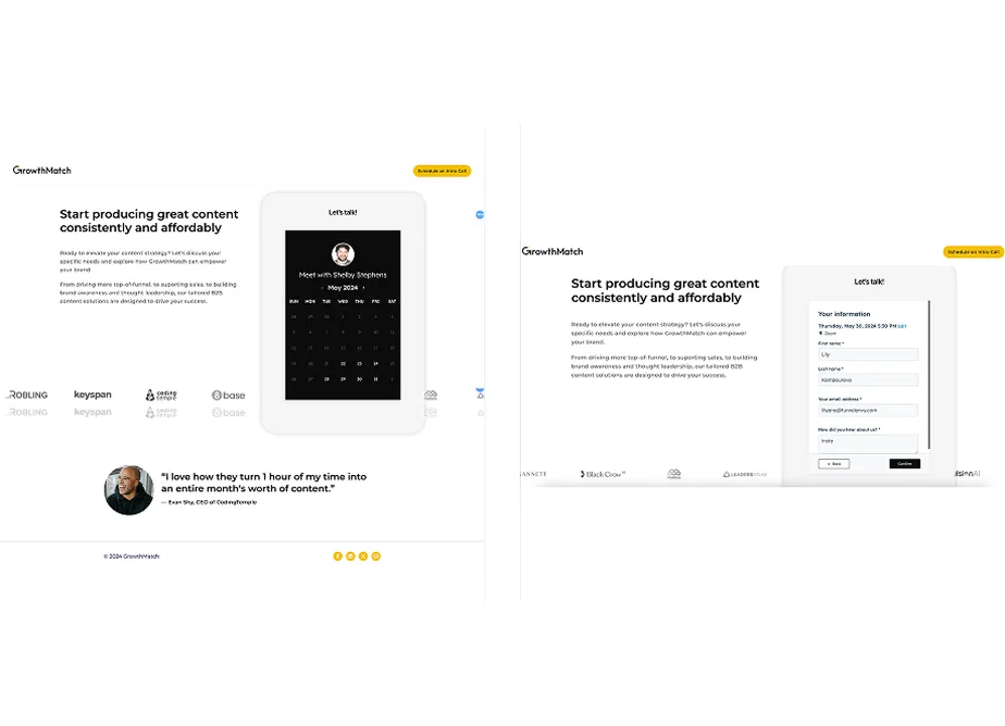 The form significantly improved lead conversion rates and allowed the GrowthMatch sales team to have more streamlined discovery calls.