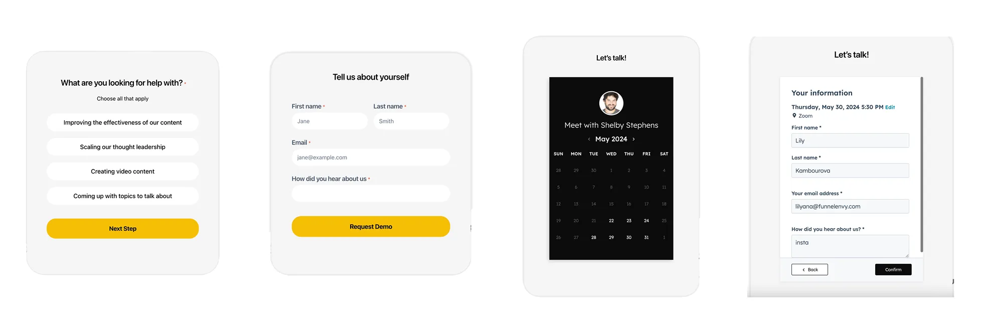 This new form replaced a plain HubSpot calendar widget and was designed as a multi-step form that:
